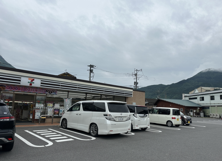 버스를 타고 유후인에 도착하면, 세븐일레븐 편의점 쪽에서 하차를 할 수있습니다.